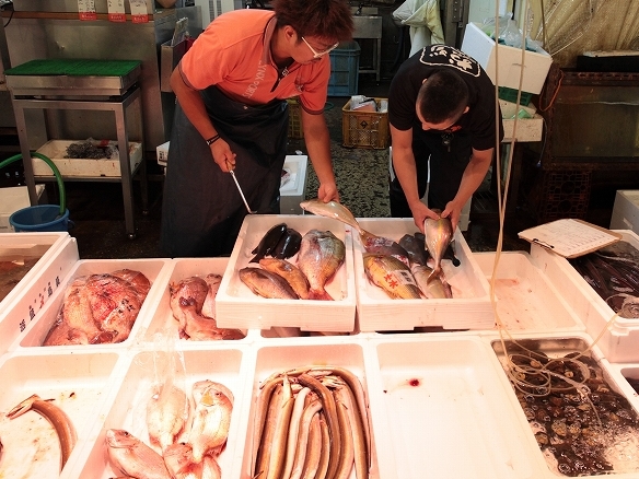 市場では、一匹一匹手に取って、その生命力と向き合います