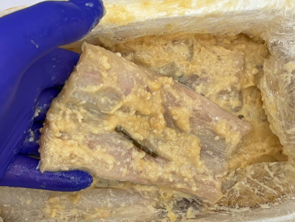 脱水後の穴子を、秘伝の味噌床に漬け込み熟成。