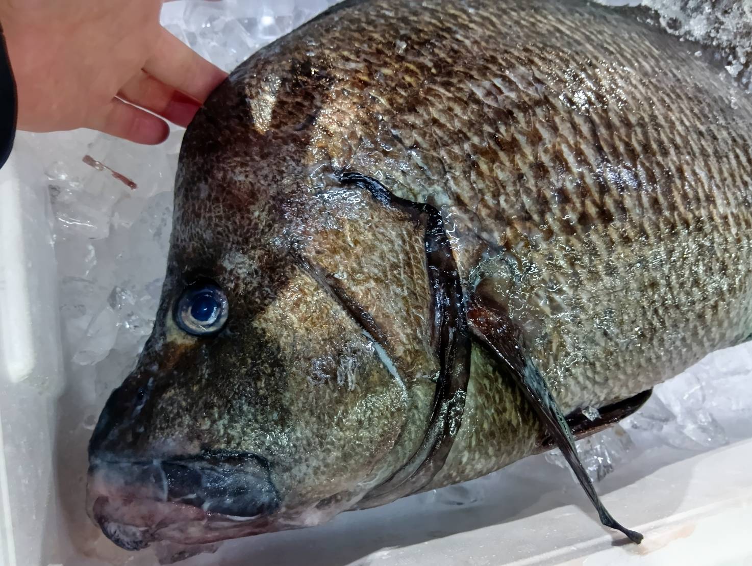 超極上!6.7kgの最高の魚体。肥え方も抜群で、肩口からの盛り上がりが今まで見たこともないようなすごいもの。知名度こそ低いものの個人的にはクエより旨いと思っています。上品なのにしっかりした旨味、底深い甘味。特にあらは、鍋にするとたまりませんよ!
