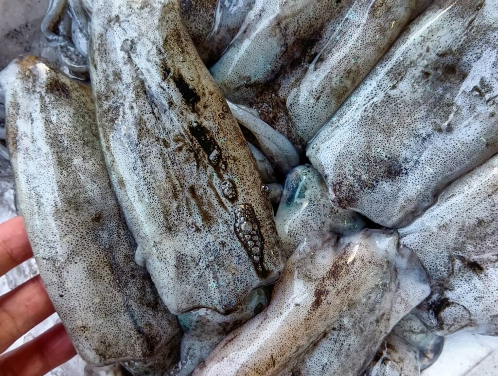 秋ごろから出回る小さなアオリイカはやや水っぽい。