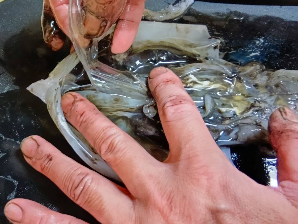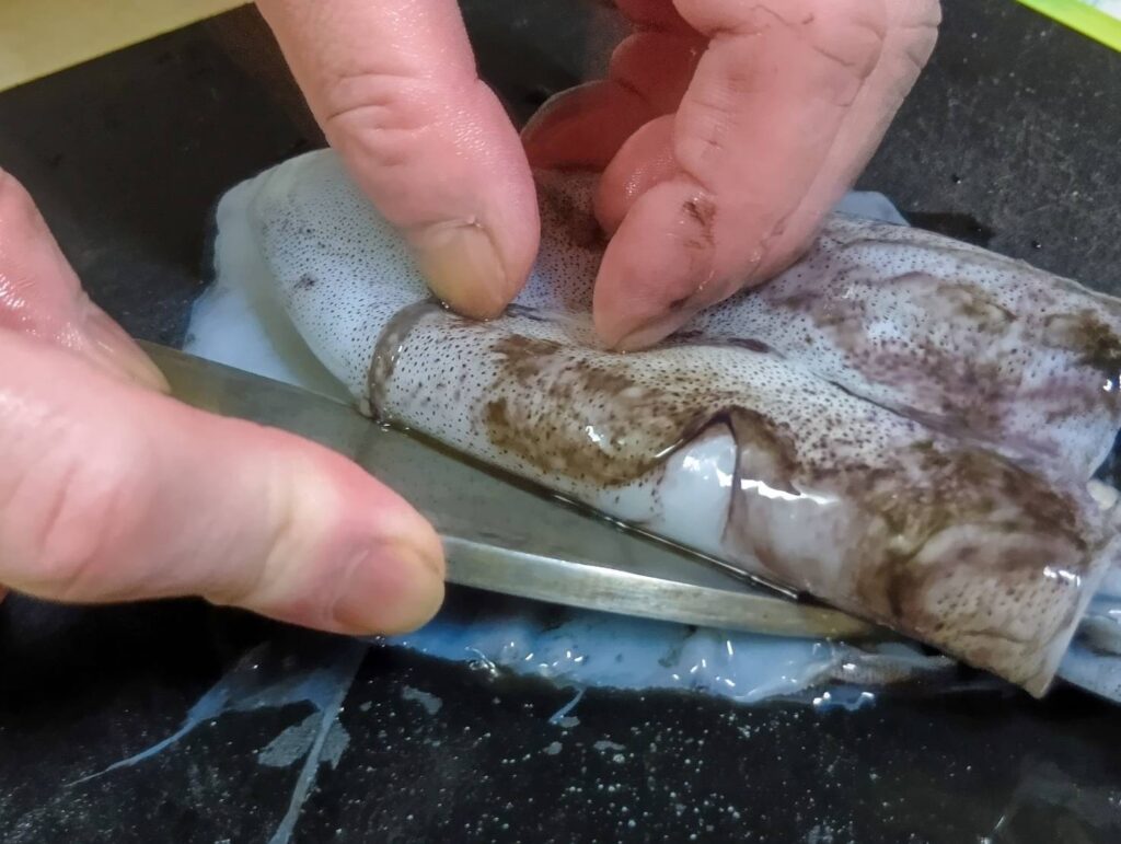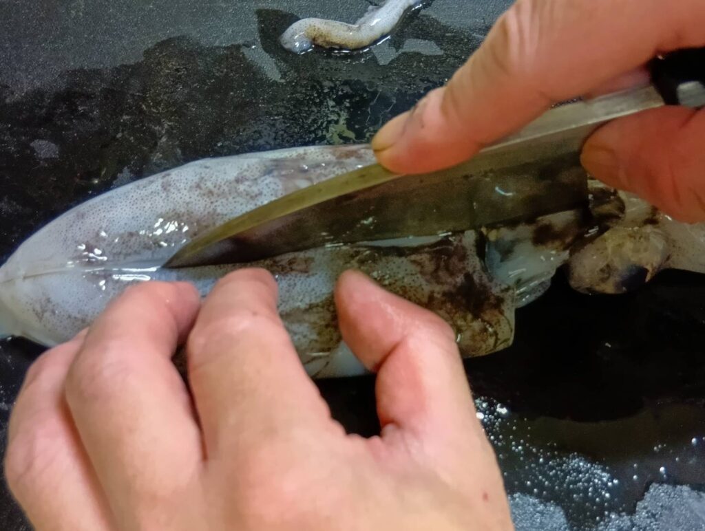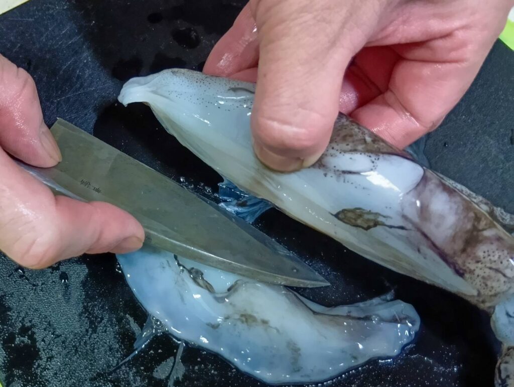 墨袋やら内臓やら、目やらくちばしやら軟骨まで、キレイに掃除。